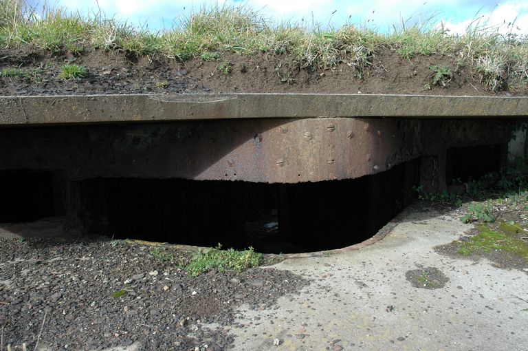 Vue du créneau de la chambre d'observation protégée par un épais blindageImmatriculation