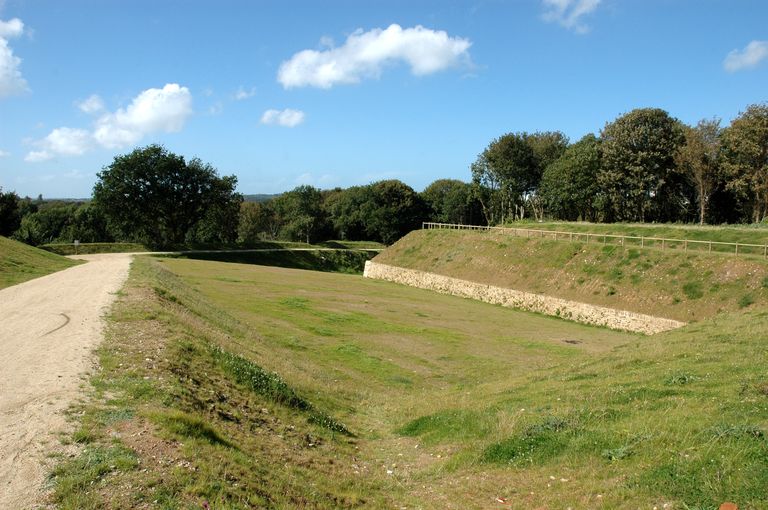 Vue générale de l'ouvrage à cornes de Quéliverzan (état en sept. 2004)Immatriculation