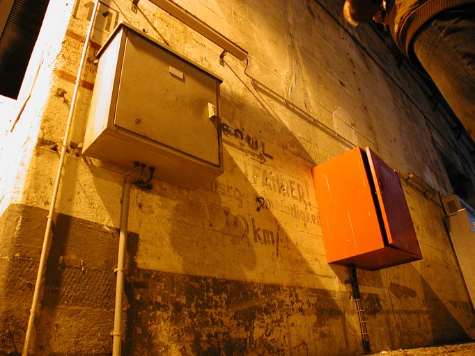 Vue intérieure de la base de sous-marins : marquages allemands sur les murs (2004)Immatriculation