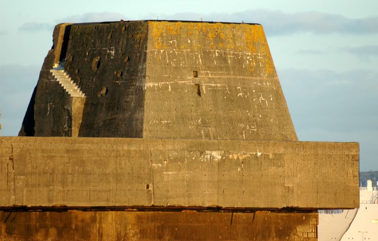 Vue de la base de sous-marins : détail du front sud-ouest, cuve de défense pour canons antiaériensImmatriculation