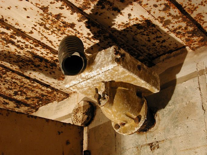 Vue du filtre dépoussiéreur avec sa plaque d'instruction (chambre de troupe gauche)Immatriculation