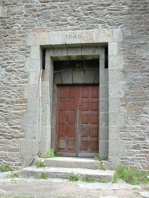 Vue du réduit de batterie de côte de la pointe de Kermorvan, façade occidentale, l'entrée, chronogramme 1846Immatriculation