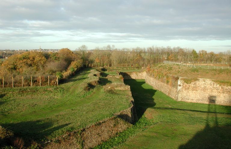 Vue générale du fossé sec Ouest et des dehors depuis le bastion Sud-ouestImmatriculation