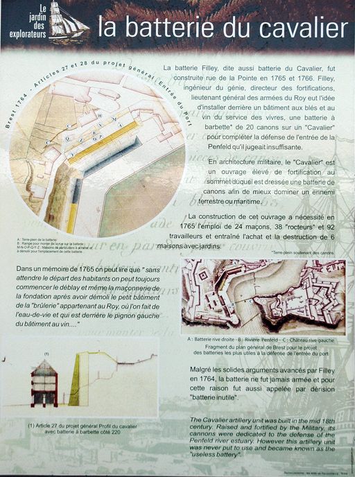 Signalétique en place au Jardin des Explorateurs : histoire de la batterie du Cavalier dite batterie FilleyImmatriculation