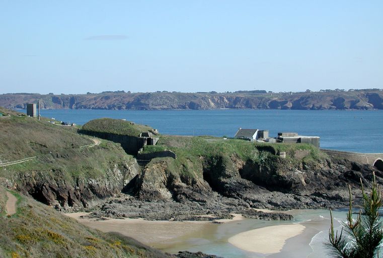 Vue générale de la pointe du Petit Minou depuis la pointe du Grand Minou - Toulbroc'h (côté ouest) : fort, batteries et pont du phareImmatriculation