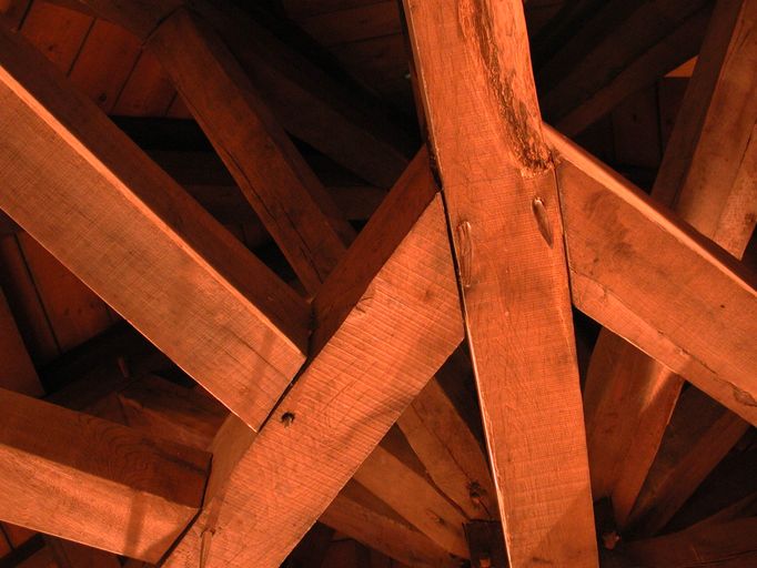 4e niveau : détail de la charpente supportant la toiture à six pansImmatriculation