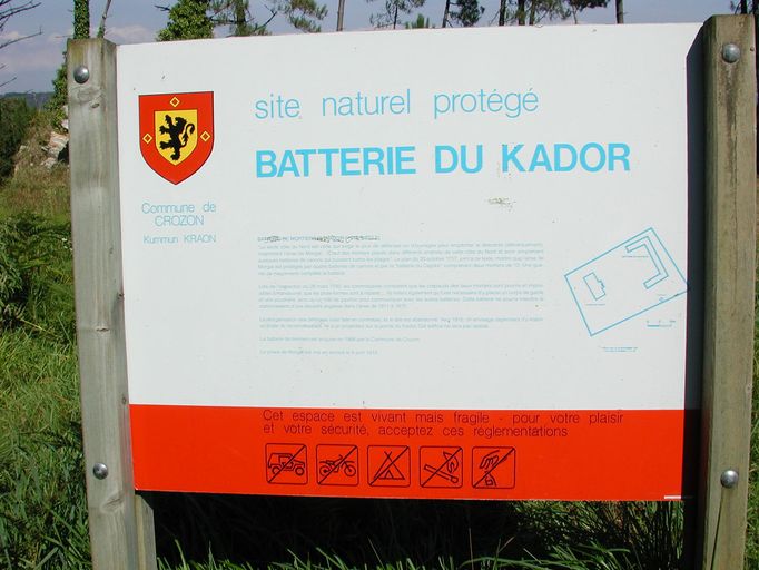 Signalétique en place sur l'ancienne batterie haute du KadorImmatriculation