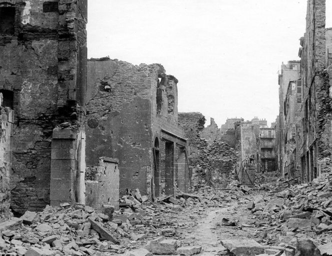 Vue de la rue Kléber, septembre 1944 (Au revers de la photographie : cachet du service photographique du journal Ouest-France)Immatriculation