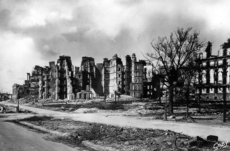 Vue de la Place du château, fin 1944-1945, carte postale (Gaby)Immatriculation