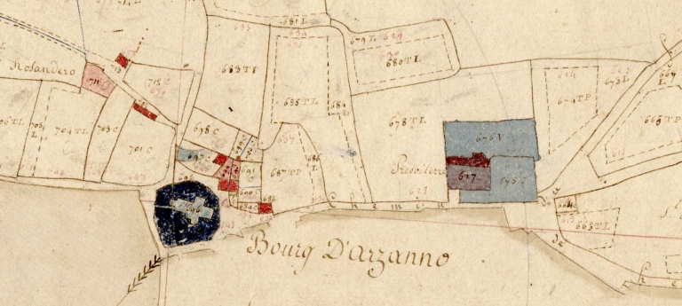 Partie nord du bourg. Extrait du cadastre de 1810, section A 2.Immatriculation