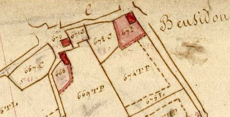 La partie sud du village en 1810. Extrait du cadaste, section B2 (A.D. Finistère, 3 P 073)Immatriculation
