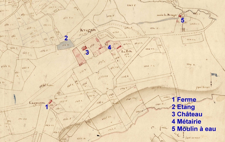 Le domaine en 1810. Extrait du cadastre, section D3 (A.D. Finistère, 3 P 073)Immatriculation