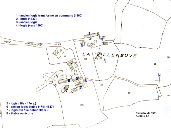Plan-masse du village et emplacement des éléments repérésImmatriculation