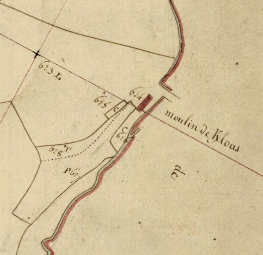 Kerloas, emplacement du logis, extrait du cadastre de 1818, section B 2 (A.D.Finistère, 3 P 141)Immatriculation