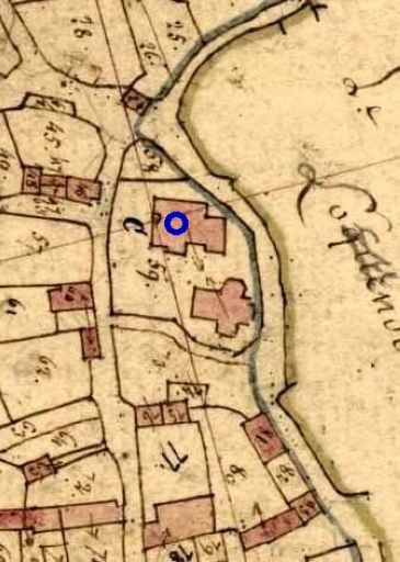 Locunolé, église paroissiale Saint-Guénolé : extrait du cadastre de 1828, section B 1 (A.D. Finistère, 3 P 201), reproduction de 2004Immatriculation