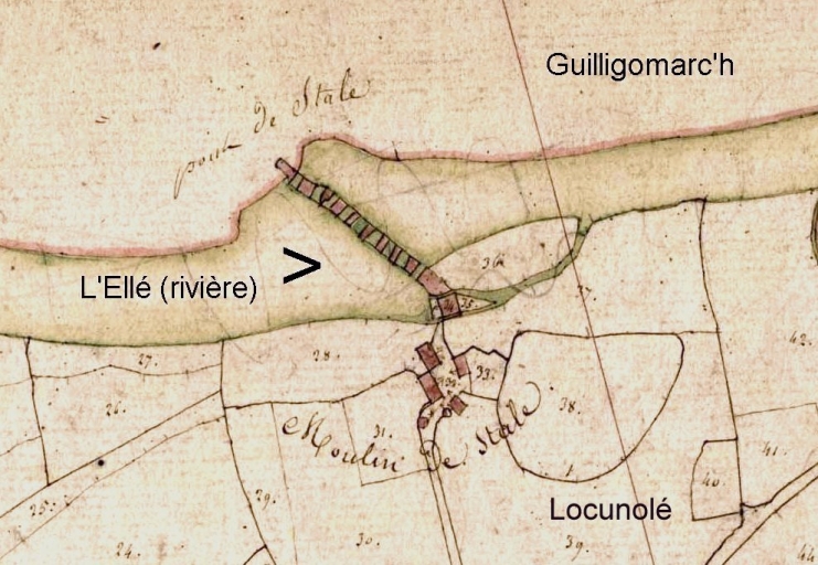Le pont du Stal. Extrait du cadastre de 1828, section C 1 (A.D. Finistère, 3 P 201)Immatriculation