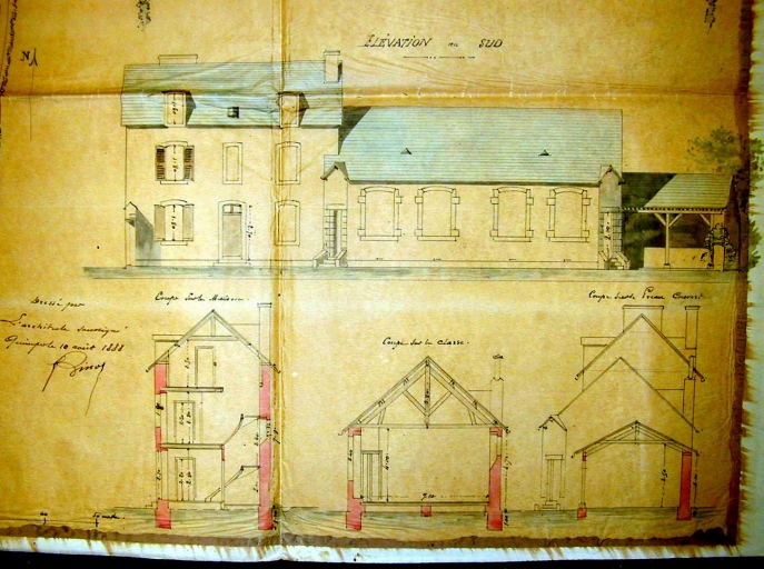 Projet de 1880, élévation et coupes (A.E. Quimper, 8 L)Immatriculation