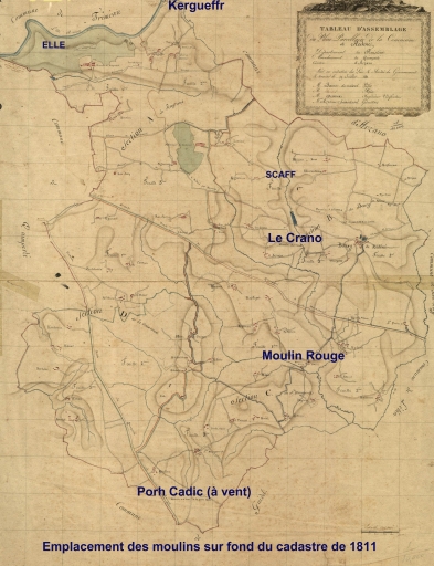 Emplacement des moulins sur fond du tableau d'assemblage de 1811Immatriculation