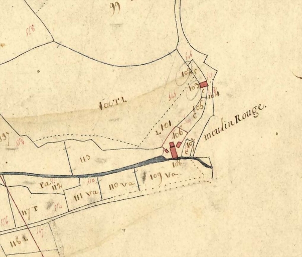 L'emplacement du moulin rouge. Extrait du cadastre de 1811, section C 1Immatriculation