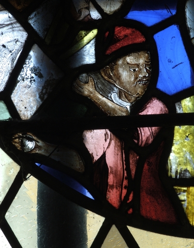 Verrière à personnages de la baie 1 : Christ en croix, Martyre de saint Etienne,