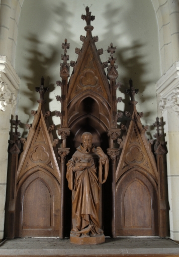 Cinq statues : saint Nicolas, saint Pierre, saint Benoît, saint Louis, saint Urbain,