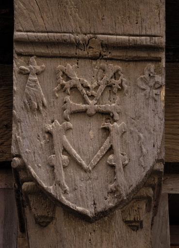 console du rez-de-chaussée avec Initiales, hermine et fleur de lysImmatriculation