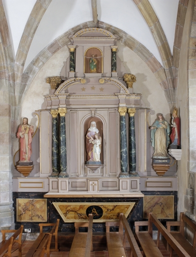 Ensemble du retable de la Vierge : autel, tabernacle et deux gradins,
