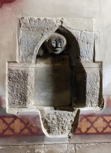 Nef, mur sud : lavabo en niche orné d'un masqueImmatriculation