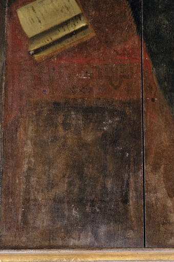 Tableau d'autel dans son cadre : Vierge à l'Enfant avec un donateur présenté par saint Pierre,
