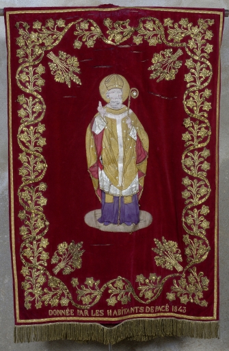 Bannière paroissiale de procession : saint Melaine et Immaculée conception,