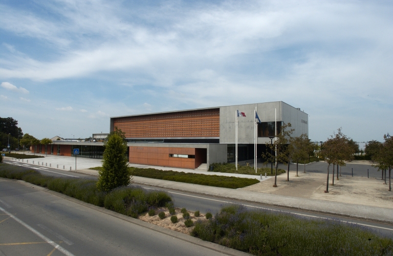 Mairie, écoles et monument sur la commune de Pacé,