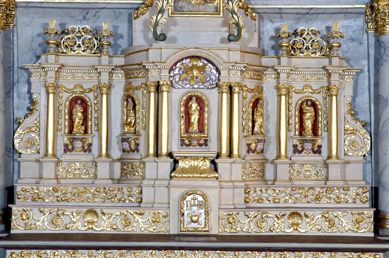 Ensemble du maître-autel : autel, tabernacle à dais d'exposition, retable, 2 gradins d'autel, 3 degrés d'autel,
