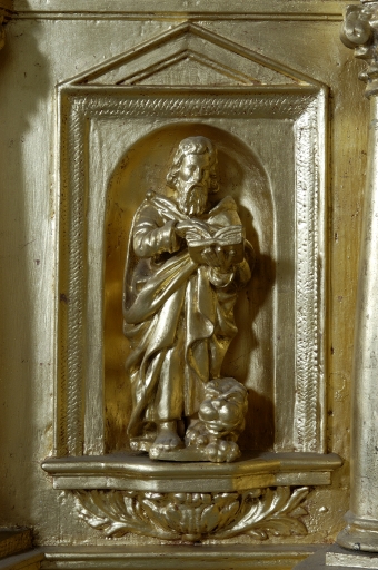 Ensemble de l'autel de Saint Nicolas et de Saint Armel : autel, lavabo, tabernacle, retable, gradin d'autel, 2 degrés d'autel,