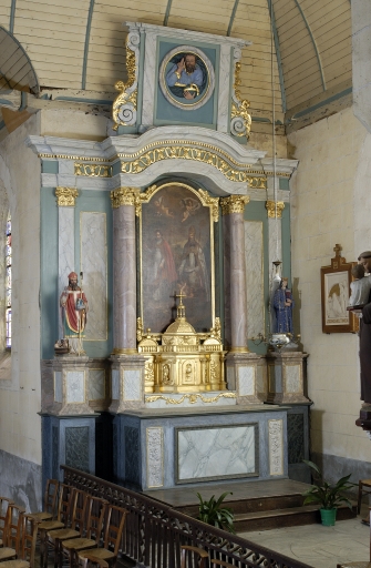 Ensemble de l'autel de Saint Nicolas et de Saint Armel : autel, lavabo, tabernacle, retable, gradin d'autel, 2 degrés d'autel,
