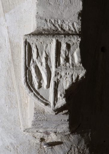 Troisième pilier nord, armoiries de Gilles du Tiercent et de sa femme Jeanne de la LandeImmatriculation