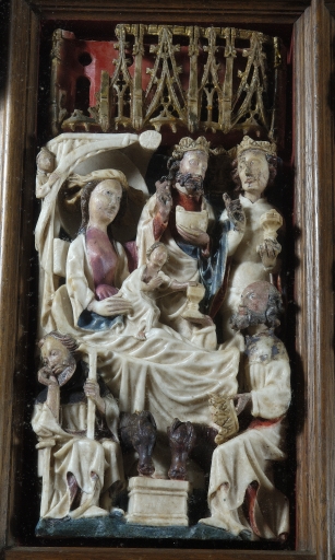 Retable de la Vierge : Vie de la Vierge, Saint Jean-Baptiste, Sainte Barbe, Saint Laurent, Saint Etienne, Saint Thomas reçoit la ceinture de la Vierge,