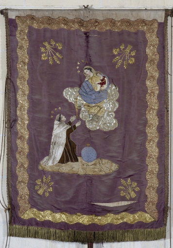 Bannière de procession : Assomption, Don du Rosaire,