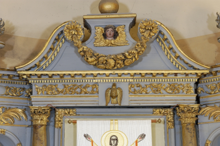 Ensemble du maître autel : autel, tabernacle, gradin d'autel, retable, tableau d'autel, degré d'autel,