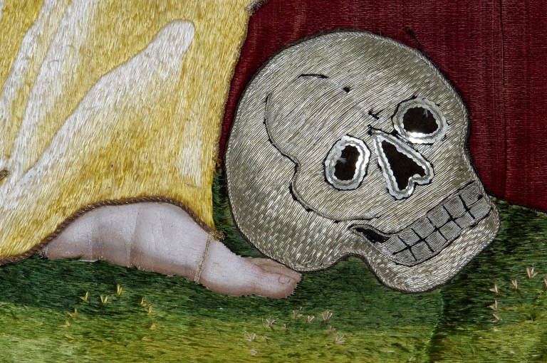 Face portant Marie-Madeleine, détail : crâneImmatriculation