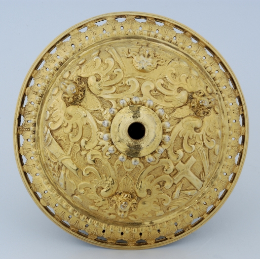 Calice, décor du pied vu du dessus : Instruments de la Passion, angelots, ornementation végétaleImmatriculation