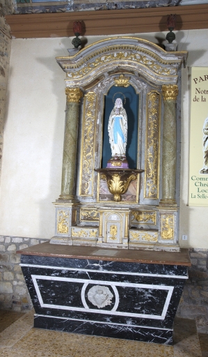 Ensemble de l'autel de la Vierge : autel, tabernacle, gradin d'autel, retable, 2 degrés d'autel,