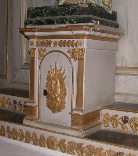 Ensemble de l'autel de la Vierge : autel, tabernacle, retable, 2 gradins d'autel, degré d'autel,