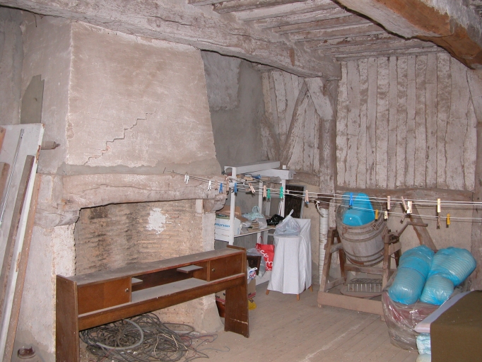 Vue intérieure ; chambre à l'étage, cheminéeImmatriculation