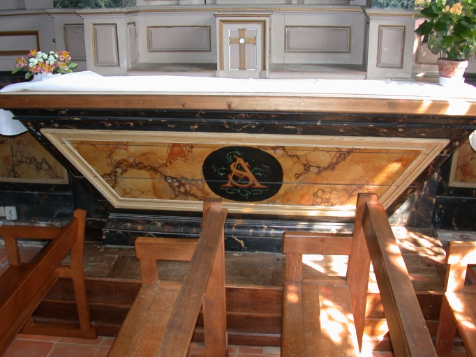 Ensemble du retable de la Vierge : autel, tabernacle et deux gradins,