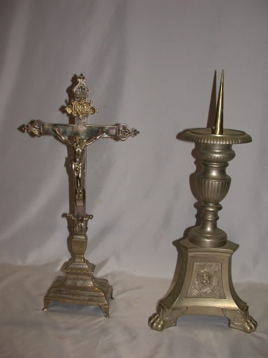 Garniture d'autel : Croix et six chandeliers d'autel,