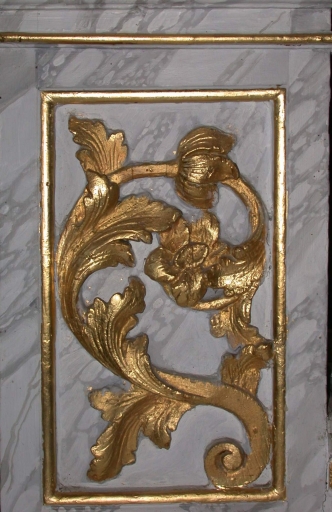Colonne gauche, soubassement : rinceau végétalImmatriculation