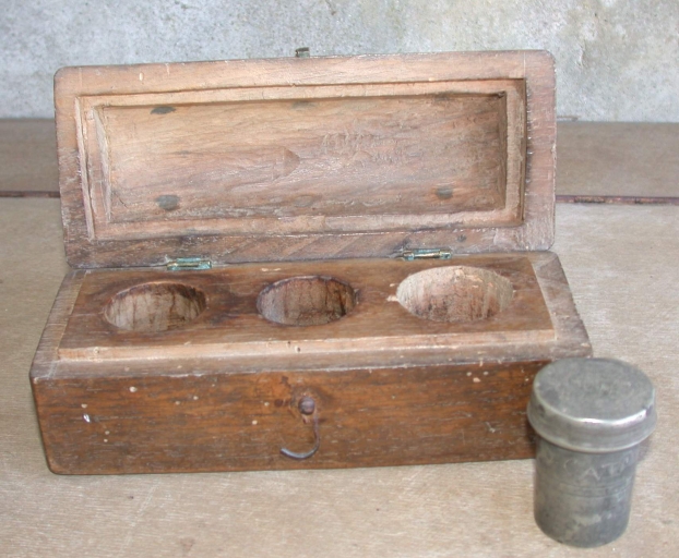 Ampoule à huile des catéchumènes dans son coffret,