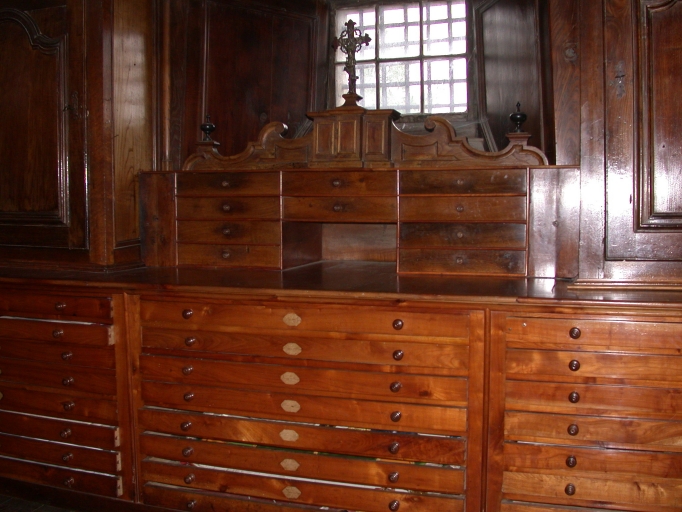 Meubles de sacristie : chasublier, 3 armoires, lambris de revêtement,