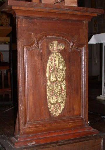 Ancienne chaire à prêcher, aujourd'hui autel face aux fidèles et pupitre,
