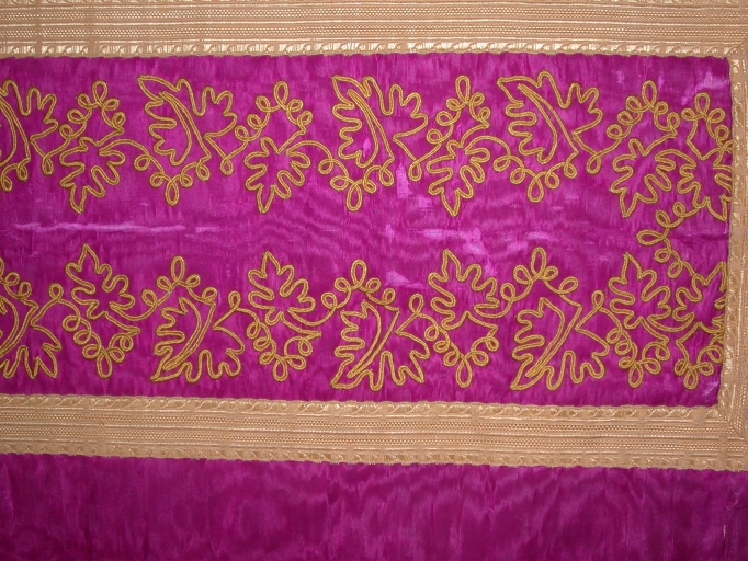 Ornement violet 1 : chasuble, bourse de corporal, étole, voile de calice,